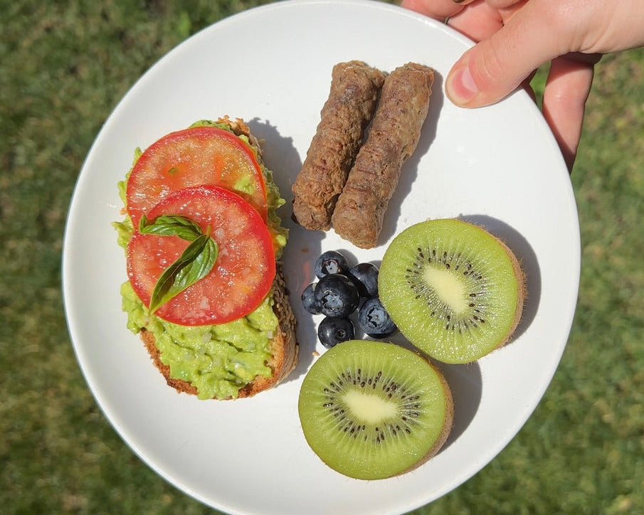 If you're looking for simple gluten-free bread recipes, Plantiful Kitchen’s sesame loaf is an excellent choice that can help lower blood sugar after eating and provide a nourishing start to your day. That’s why we are using it in the recipe below! The recipe is specifically crafted to provide you with the tools you need for a balanced breakfast that will aide your blood sugar levels. Your complex carbohydrate—the sesame seed bread—also contains fiber and protein. We also have avocado—healthy fat, tomato—more fiber, and the quality protein of your choice—I chose grass-fed sausage from Teton Waters Ranch, which I am loving recently. Hope you enjoy!